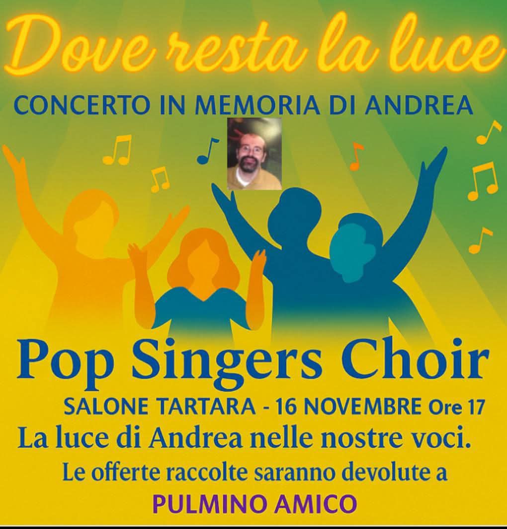 L’Associazione Pulmino Amico ODV ha l’onore di ospitare un emozionante concerto del coro casalese POP SINGERS CHOIR, interamente dedicato alla memoria di Andrea Rota.